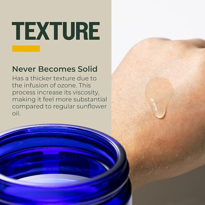 - Fully Ozonated for Maximum Benefits: Unlike partially ozonated oils, our fully saturated ozonated sunflower oil features a thick honey-like liquid texture, deeply soothing and restoring dry, dull skin