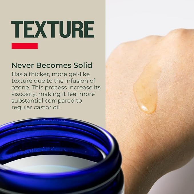 - Ultra-Pure Ozone-Infused Castor Oil: The power of ozone from ultra-pure oxygen enhances the natural benefits of this gentle, low-strength certified organic, filtered castor oil, an endlessly versatile medium-absorption salve with hundreds of uses