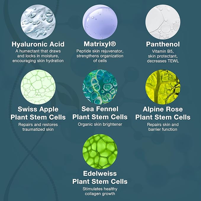 - INFUSED WITH RESTORATIVE PLANT STEM CELLS – Powered by sea fennel, alpine rose, Swiss apple, and edelweiss plant stem cells combined with minerals and peptides to nourish the skin, improve resilience, and enhance overall facial skincare performance.
