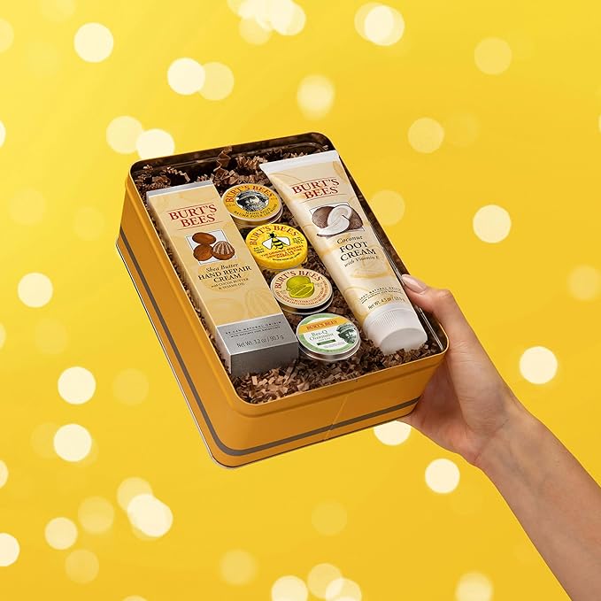 - BURTS BEES GIFT SET: These natural, moisturizing skin care products gifted in a Burt’s Bees tin nourish skin throughout the winter months and make the perfect holiday stocking stuffer