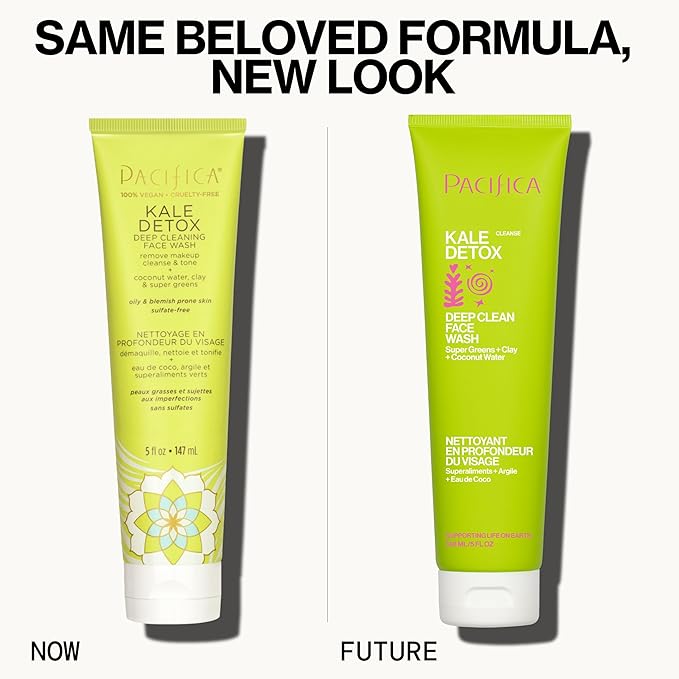 Pacifica Kale Detox Face Wash for Oily & Acne-Prone Skin, Deep Cleansing Facial Cleanser & Makeup Remover with Super Greens Kale, Seaweed & Clay, 5 fl oz –Clean Beauty, Vegan & Cruelty-Free