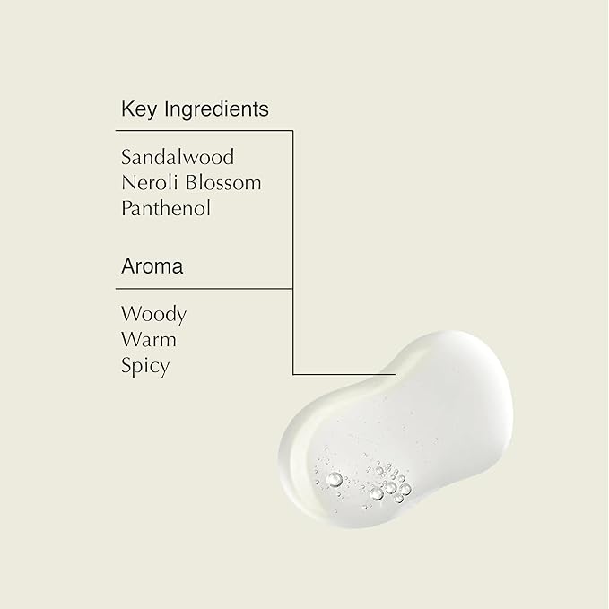 - Key Ingredients: Sandalwood, Neroli Blossom, Panthenol (Provitamin B₅)