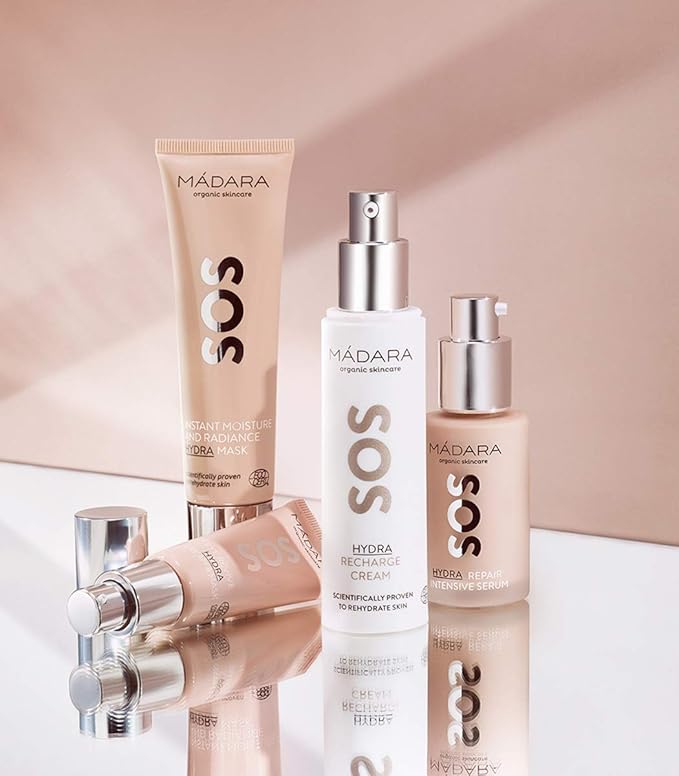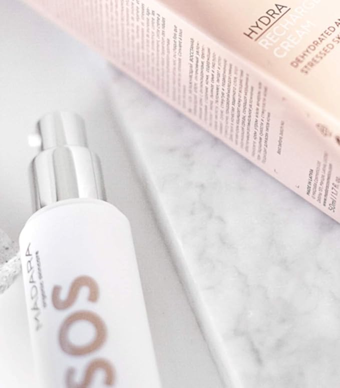 MรDARA Organic Skincare | SOS Hydra Recharge Cream โ 50ml, Intensely hydrating moisturiser with hyaluronic acid and linseed, Dermatologically proven face cream for dry skin, Organic certified