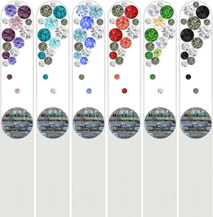 Mont Bleu Gift Set of 5 + 1 Free Czech Glass Nail Files Hand Decorated with Crystals - Gifts for Women - Handmade Gifts - Czech Tempered Glass - Premium Crystal Nail Files for Women