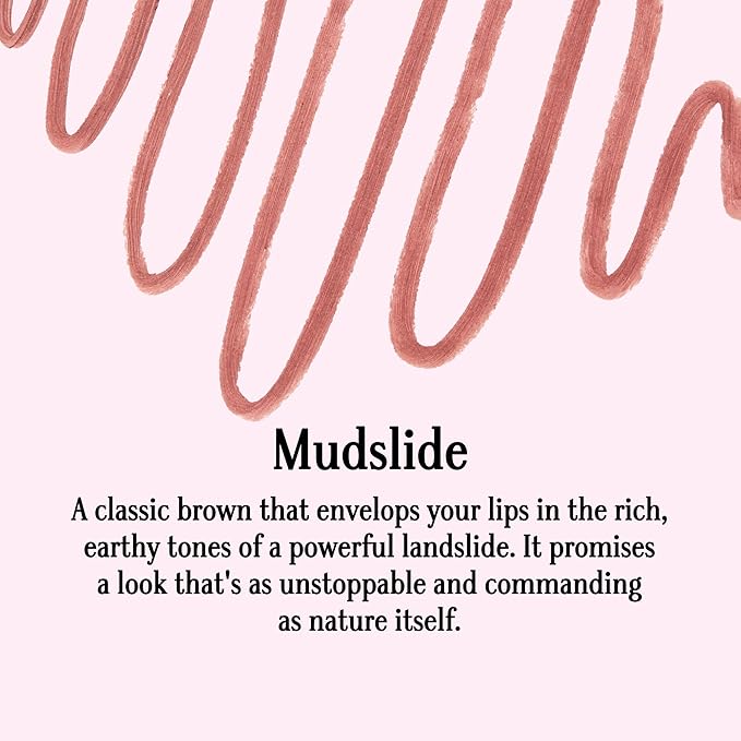 - MUDSLIDE: Shade 'Mudslide' is a classic neutral brown lip liner. This versatile shade is sure to become a staple to pair with your neutral or brown lipstick looks.