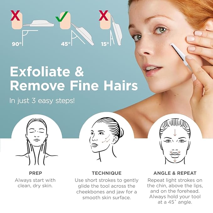 - Easy 3-Step Use at Home - Step 1: Clean and dry skin completely. Step 2: Hold blade at a 45° angle for optimal results. Step 3: Glide downward gently while keeping skin taut; ideal for dermaplaning, eyebrow shaping, and precise grooming.