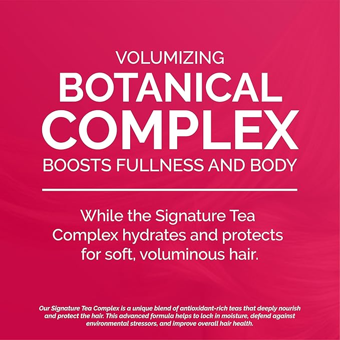 - Volumizing Botanical Complex: Both the shampoo and conditioner are formulated with our proprietary Volumizing Botanical Complex, which includes ingredients such as ginseng and white nettle. These components work to add healthy body and lift to fine hair, enhancing its overall fullness and vitality with each use.