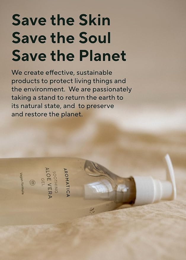 AROMATICA Organic Aloe Vera Gel 10.14oz/300ml, After Sun Care And Sunburn Relief with Pure Aloe Vera Gel Face&Hair, Sun Burn Moisturizer EWG Verified