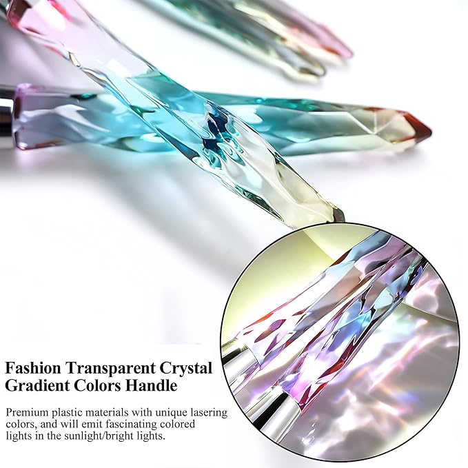 - Popular Crystal Makeup Brush Set - This crystal makeup brush set will be the best gift choice for you. The irregular surface of its transparent handle will emit fascinating green-colored light in the light or sunlight.