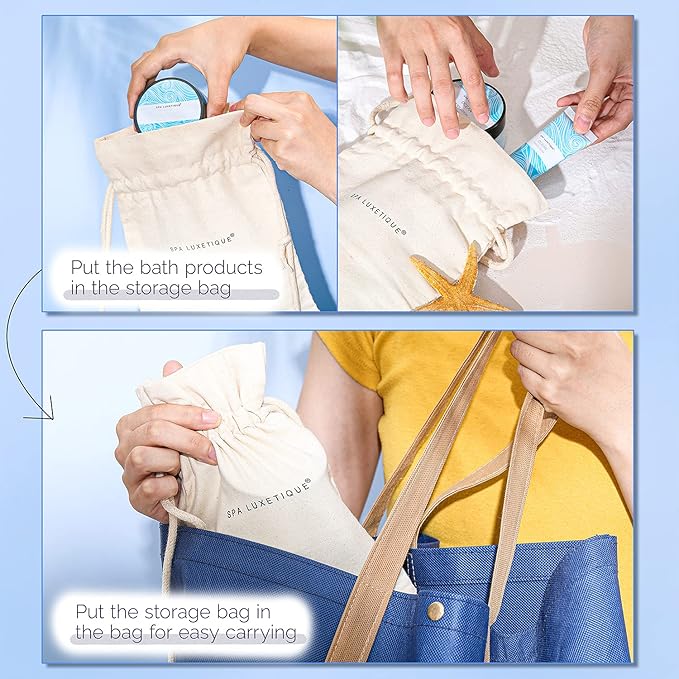 - Bath Kit for Women: Our self care gifts have natural burlap gift bag made of high quality burlap material, designed with secure jute drawstring; Perfect to carry everywhere and for on-the-go cleansing and moisturizing needs