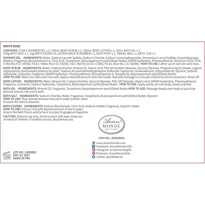 - Product Benefits : Provides a luxurious spa experience at home with various soothing and moisturizing body care products in a fresh rose scent, suitable for different skin types Provides a luxurious spa experience at home with various soothing and moisturizing body care products in a fresh rose scent, suitable for different skin types