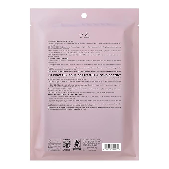 e.l.f. Complexion Perfection Brush Kit, 4-Piece Makeup Brush Set, Brushes For Foundations & Concealers, Vegan & Cruelty-Free