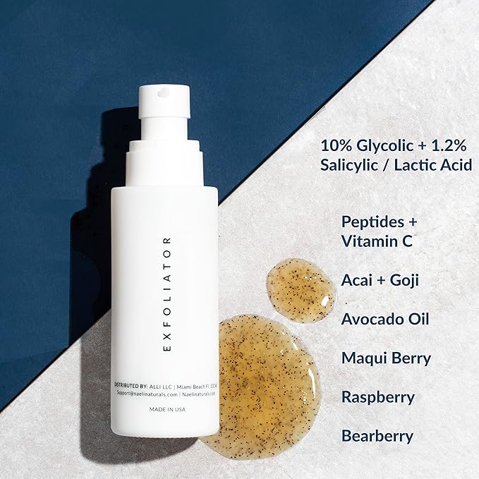 NAELI AHA/BHA Exfoliating Face Wash - 10% Glycolic Acid & Salicylic Acid Cleanser, Anti Aging Acne & Wrinkle Reducing Facial Exfoliant, Pore Minimizer & Brightening Gel, 4 oz