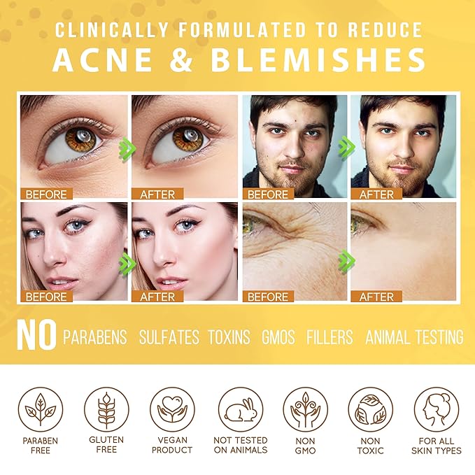 - 🍯 Only the Best Superfoods- include Aloe & Jojoba that provide a luscious blast of hydration, while boosting collagen for plumper, firmer skin. Vitamins C, B5 & E promote skin regeneration & boost collagen to fill in fine lines & wrinkles, while protecting against impurities that lead to premature aging. Tea Tree Oil clears pores of grime & build-up that lead to blemishes and acne, while reducing puffiness, dark circles and sagging.