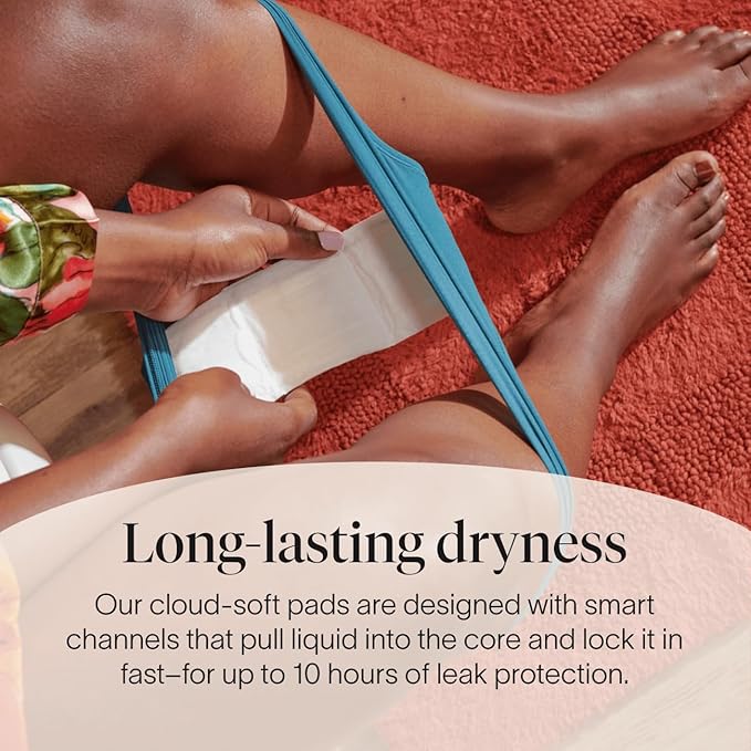 - SLEEP, UNINTERRUPTED: Pillow-soft and cushiony maxi pads quickly lock in liquid for up to 10 hours of extra dry leak protection—even with a heavy flow. Naturally wicks moisture away to keep you dry and super comfortable.