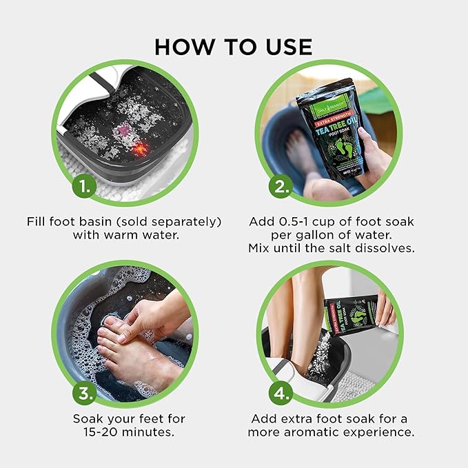 - 4 THERAPEUTIC FOOT SOAKS FOR ALL YOUR FEET’S NEEDS: Including: a Muscle Relief, a Calming Lavender, a Tea Tree Oil & Citrus Foot Soak, this premium 4-pack will cover any of your feet’s needs. Fast dissolving, they are perfect for athletes, sportspeople or anyone seeking for a complete foot-care routine at home!