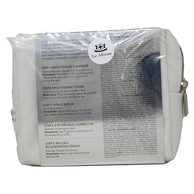 Le Mieux Beauty Essentials for Dull Skin - 5-Piece Skincare Set - Illuminating Cleanser & Toner, Vitamin C Serum, Eye Wrinkle Corrector and Bio Cell Rejuvenating Cream for Face