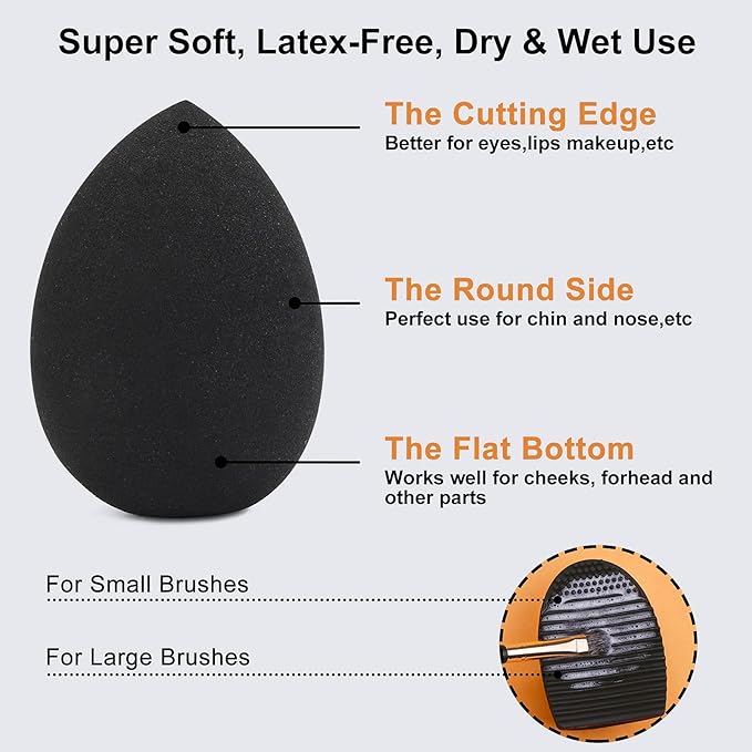 - COOL BLACK DESIGN:The black design is inspired by the MAANGE brand. Whether it is a sponge, a brush cleaner mat, a makeup brush bag, or the makeup brush itself, it is styled in cool black. It exudes a stylish and cold atmosphere, which highlights the identity and is also full of the breath of leading the trend of the times.