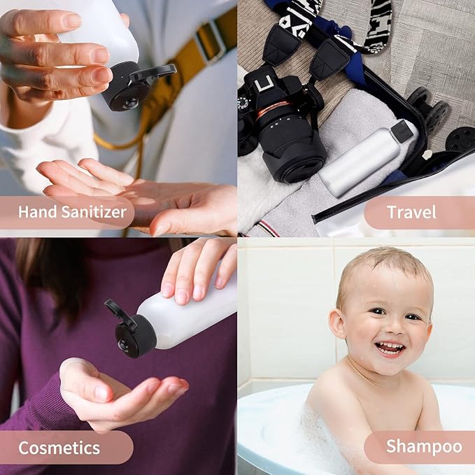 - 【TRAVEL SHAMPOO BOTTLES】Engineered for maximum leakproof performance, each empty bottle features a secure screw top and flip cap closure. Safely store shampoo, conditioner, hand sanitizer, or mouthwash without spills. Made from durable, BPA free PET plastic, built to last trip after trip.