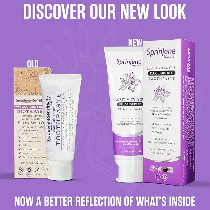 SprinJene Natural Fluoride Free Toothpaste for Sensitive Teeth & Gums – Patented Toothpaste with Black Seed Oil & Zinc – Vegan Dry Mouth Prevention for Fresh Breath – Made in The USA (1 Pack)