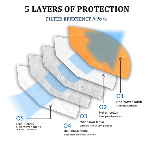 akgk KN95 Face Mask 50 PCS, Breathable Protection Masks, 5-Ply KN95 Masks, Cup Dust Safety Masks