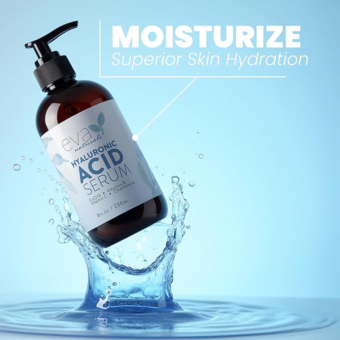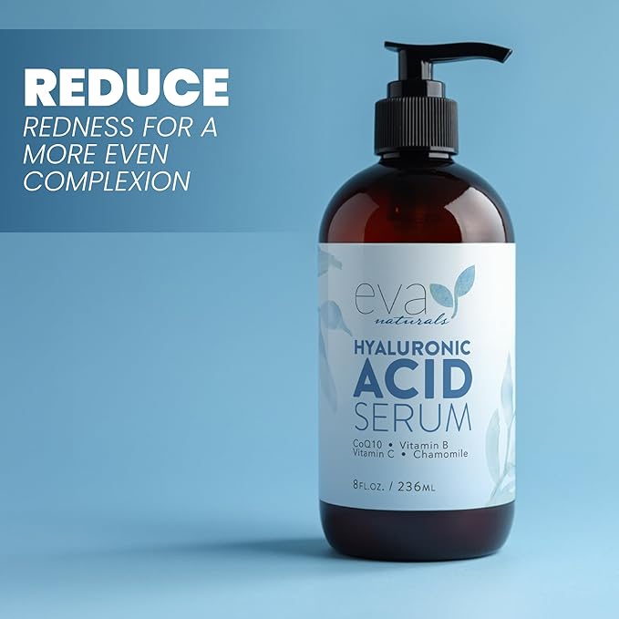 - THERAPEUTIC & ANTI-AGING FORMULA - The Eva Naturals hyaluronic face serum is formulated with premium quality ingredients such as Vitamin C & B to effectively deliver intense hydration by improving and balancing the skin's natural complexion. This moisturizing serum helps reduce the appearance of fine lines on the forehead, neck, crows feet, stretch marks & scars!
