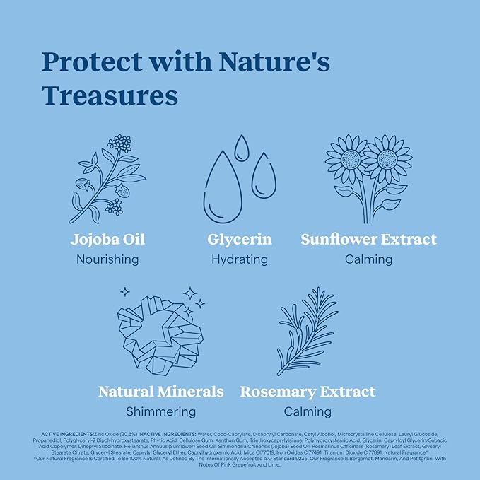 - Nourishes, hydrates and softens: Made with non-nano zinc oxide, as well as ingredients like jojoba oil, glycerin and rosemary extract, Sunglow protects, brightens, and calms your skin