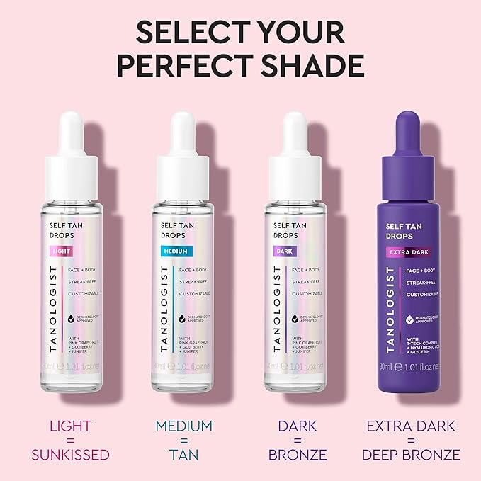 - Customizable self tan drops – Mix 3–4 bronzing drops with your favorite moisturizer for a buildable face and body tan that creates a natural, sun-kissed glow