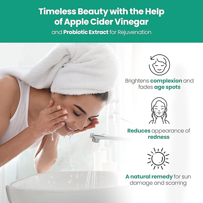 - Rejuvenating probiotic extract, vitamins: This ACV face wash is what you get when ancient remedies combine with modern science. Enhanced with probiotic extract, the face cleanser reveals timeless beauty.