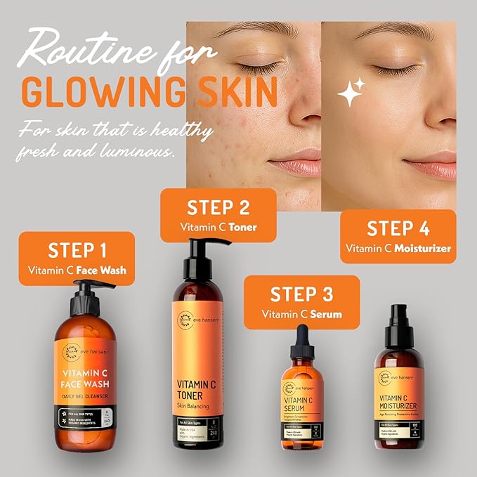 - Meet Complete Product Line: The Eve Hansen Vitamin C Face Cleanser, Toner, and Moisturizer are designed to work together, enhancing the overall effectiveness of your skincare routine.