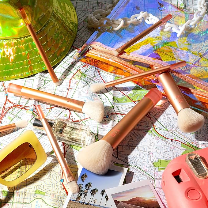 - Real Techniques Wanderer Brush Set includes: Angled Multitask Brush, Multitask Brush, Concealer Brush, Foundation Buffing Brush, Blending Shadow Brush, Tapered Shadow Brush, Angled Liner Brush, Smudge Brush, & Travel Makeup Bag