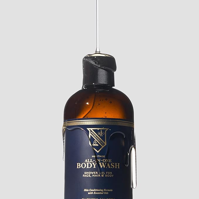 Caswell-Massey Heritage All-in-1 Body Wash, Use as a Face Wash, Beard Wash, Shampoo, Body Wash & Shave Gel, Signature Heritage Soap for Men, 12 Fl Oz Made in USA