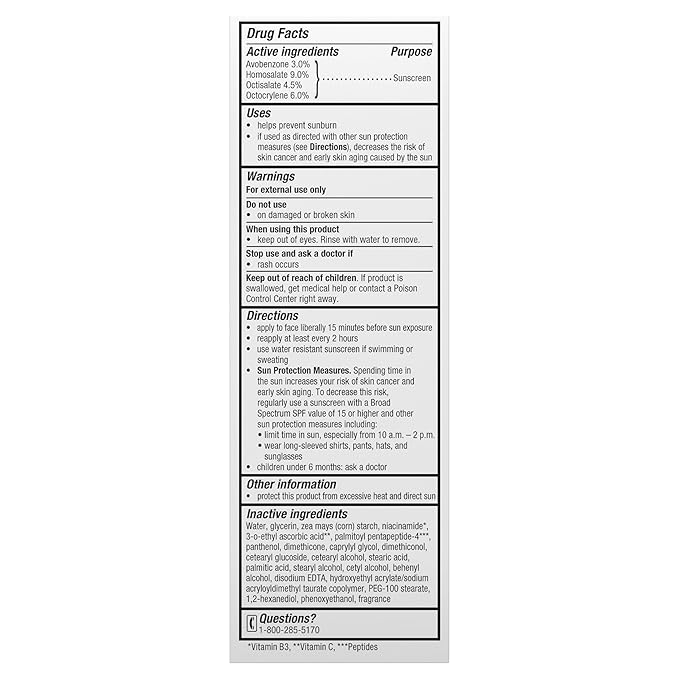 - FRESH SQUEEZED INGREDIENTS: This formula, crafted with Vitamin C, Peptides and Sunscreen Actives, visibly brightens and hydrates skin while protecting it from the sun