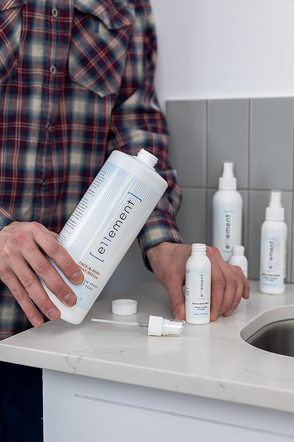 Hypochlorous Acid Face and Spray - 1 L Refill – Daily Toner – Dry Skin - Facial Cleanser - Tattoo Aftercare – Post Workout Refresher - Piercing Aftercare – Lash Cleanser - All Natural - e11ement