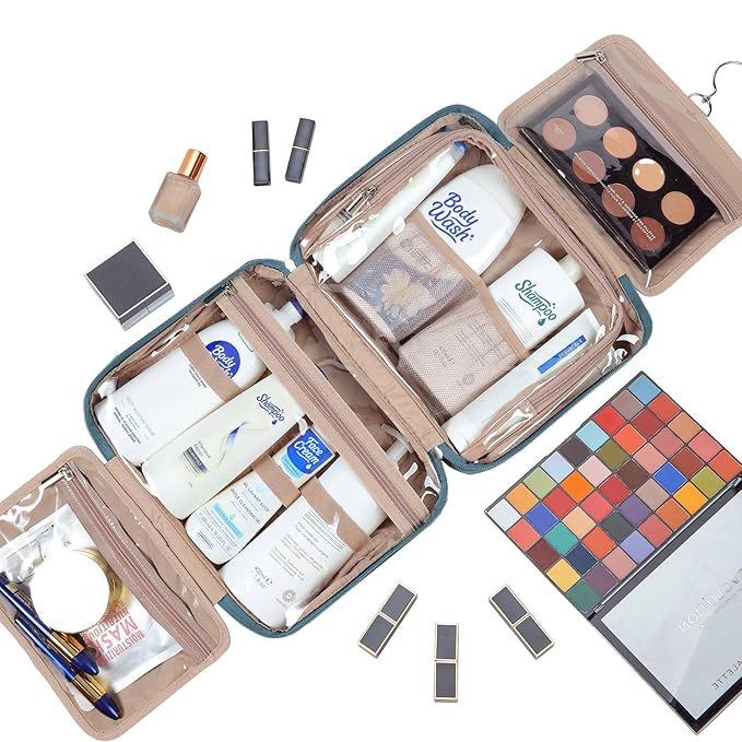 - MULTIFUNCTIONAL COMPARTMENTS - Fully open with a transparent design that gives you a comprehensive glimpse of your stuff. Four different compartments keep your toiletries in place, and a front zipper pocket provides additional storage with convenience