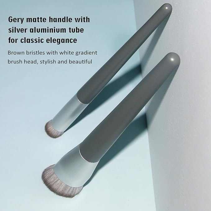 - π[Exquisite Craftsmanship and Design ]: Brochas de maquillaje profesional is made of synthetic bristles and precision-cut brush heads, which is very soft, dense, firm and ultra soft. Smoky gray wooden frosted brush texture handle with silver matte aluminum tube, low-key luxury, stylish and beautiful, easy to use. You will grow glowing with our makeup brush.