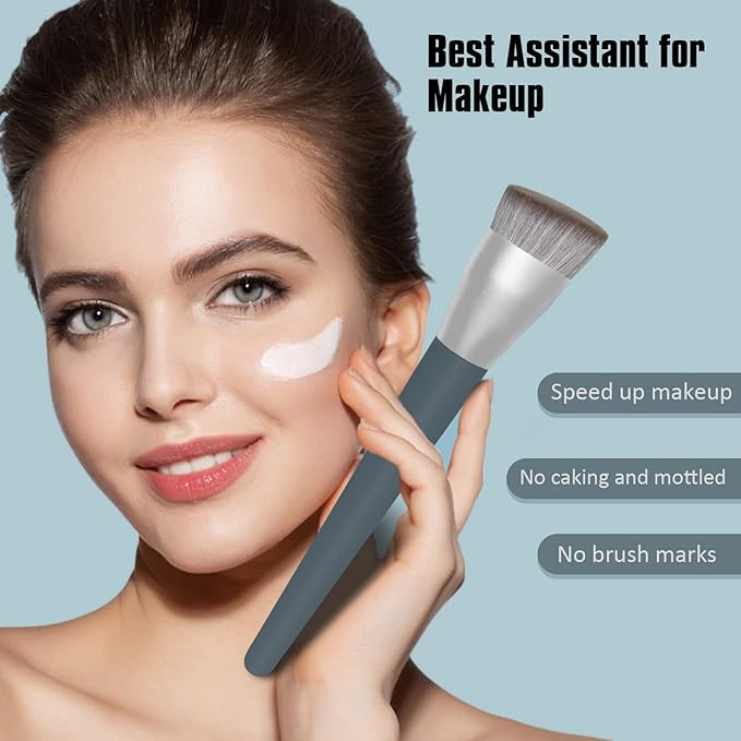 - π[Professional and Multifunctional]: Angled Flat Foundation Brush can achieve all face facial modification, even skin tone. 1.37inch brush helps you to achieve quickly a perfect makeup finish. The triangular slanted design can evenly cover the hard-to-reach corners of the face, such as around the eyes, nose and mouth. Concealer brush is designed for concealer, such as freckles, acne marks, red blood, dark circles.