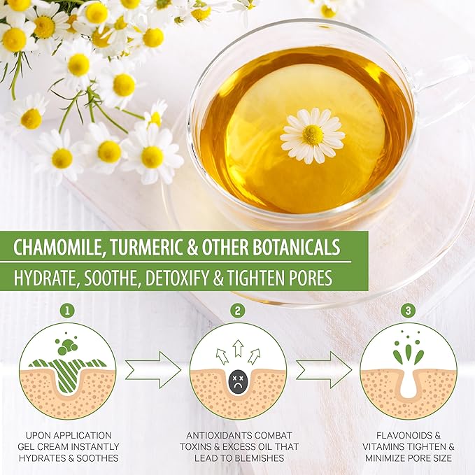 - ๐ Chamomile, Rosemary, and Mango - provide luscious all-day moisture, while combating blemishes. Anti-puffiness properties unclog & tighten pores, controlling oil production to prevent blemishes & blackheads. Anti-Aging Retinoids reduce hyperpigmentation & wrinkles for a softer more balanced complexion. Hydration properties work at a deep cellular level, helping your skin retain moisture & reducing water loss to plump, soften & tone skin.