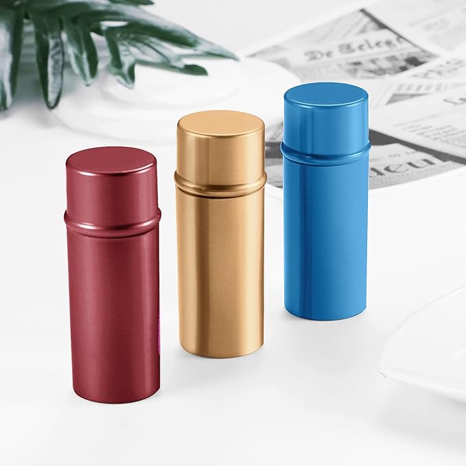 Vtrem Retractable Kabuki Brushes Travel Blush Brush Makeup Brush Portable Small Soft Bristles Powder Brush with Cover for Blush Buffing Flawless Powder, Cosmetics Tool, Brown/Red/Blue