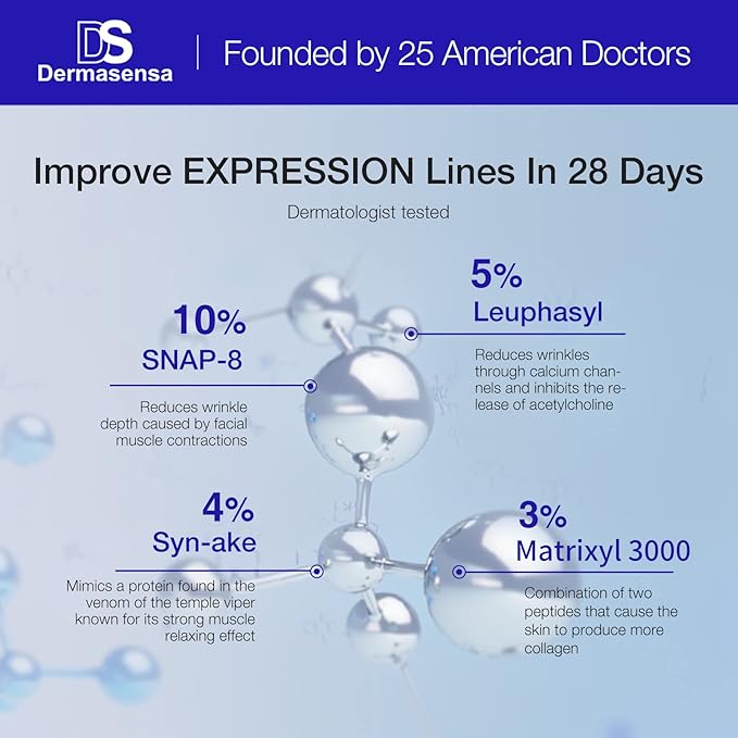 - Innovative Muscle Relaxation: Utilizes a cutting-edge blend of pre-synaptic and post-synaptic peptides, including SNAP-8 and Synake, to relax facial muscles, mimicking the effects of injectable treatments naturally and safely.
