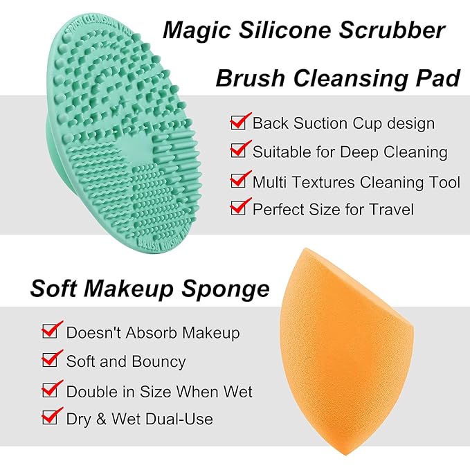 - 【9PCS Essential Brushes with Retractable Powder Brush cleaning pad&Beauty Sponge 】Contains Most frequently use brushes Including Buffer Foundation, Flat Top Kabuki Foundation Brush, 3D Kabuki Brush, Tapered Kabuki Brush,Large Angled Kabuki Brush,Precise Flat Angled, Edge Precise Brush,Precise Angled Shader,Sloped Shade, Precise Round Concealer