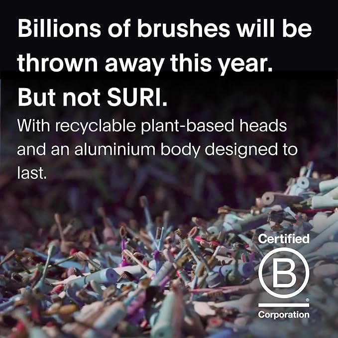 - RECYCLABLE PLANT-BASED HEADS and BRISTLES - SURI's eco-conscious electric toothbrush uses brush heads made of renewable cornstarch, and medium-soft bristles made from castor oil. SURI also offers a simple and FREE recycling service in the US