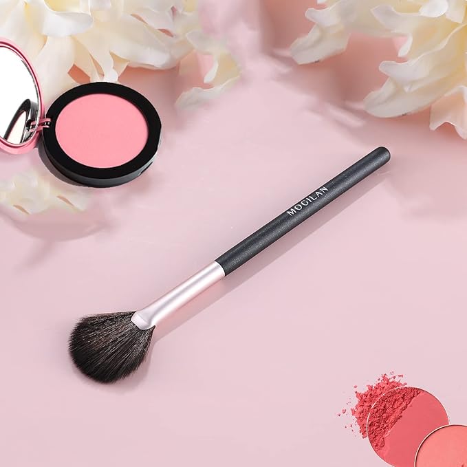 - Fan Makeup Brush for Highlighting and Blush:This professional small fan makeup brush is designed for effortless application of highlighter, blush, and bronzer. Its soft, fanned bristles evenly sweep powder or cream formulas across the face for a radiant, natural finish.