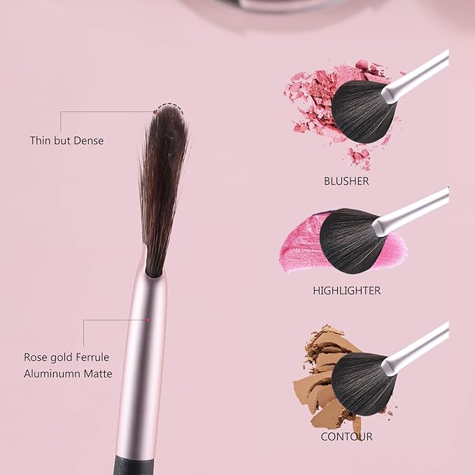 - Ideal for Highlighting & Blush:Fan-shaped design precisely applies highlighter to cheekbones, nose, and brow bone, and is also great for diffused blush or bronzer.