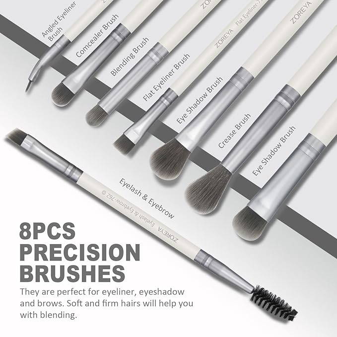 ZOREYA Makeup Brushes - 15 Pcs Premium Bamboo Charcoal Infused Bristles Makeup Brush Set, Foundation Concealers Eye Shadows Make Up Brush,Eyeliner Brushes(White)