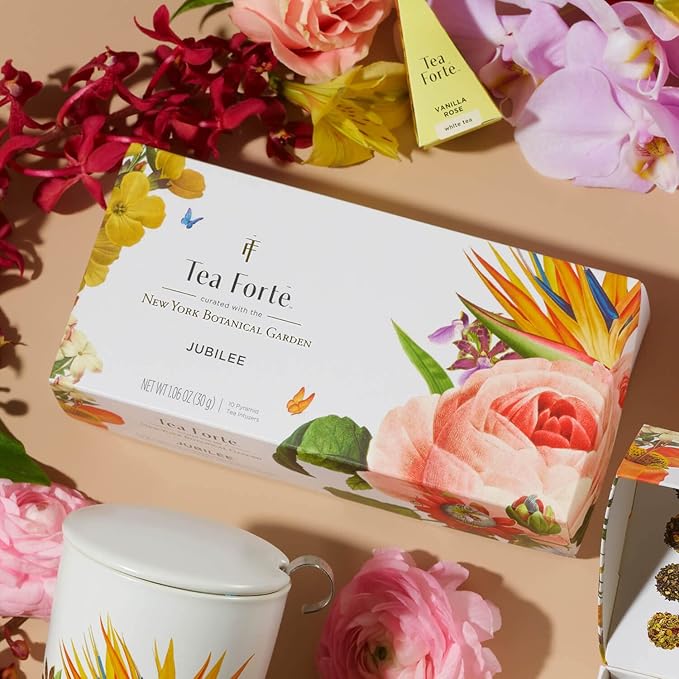 - JUBILEE PETITE PRESENTATION BOX includes a variety of hot teas with herbal tea, oolong tea, white tea, and black teas that are perfect for a gift basket, gifts for women, tea gifts, or as a gourmet tea sampler for those just starting their journey with Tea Forte Teas.