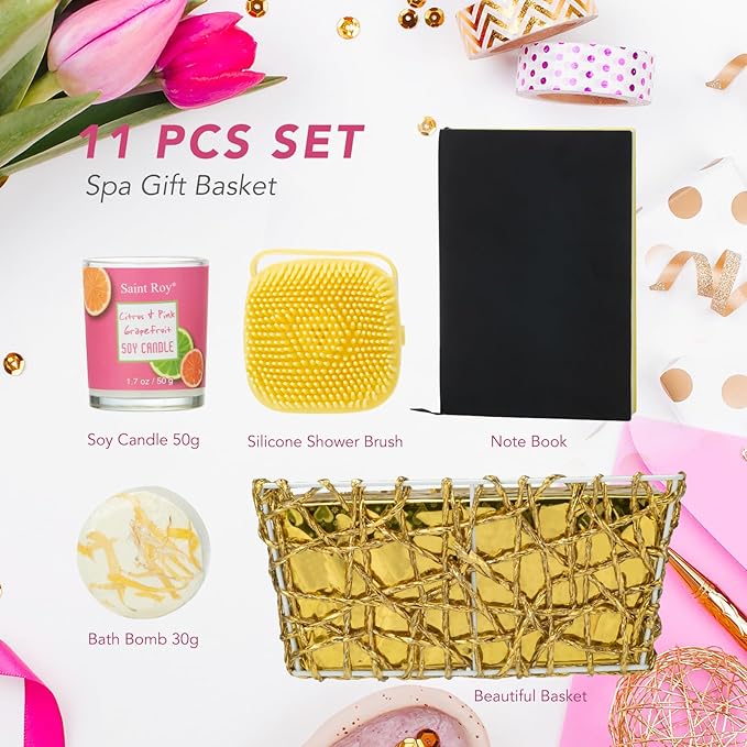 - [ Saint Roy Spa Kit Bath and Body Basket Gift Set ] Enjoy Your Home Spa Kit of A Refresh Citrus & Pink Grapefruit Scented Spa Bubble Bath Experience In The Comfort Of Your Home for Relax . Pamper Yourself In The Fragrant And Pleasant Home Spa Gift Set That Will Make It Easy For You To Enjoy Your Favorite Time Of The Day. Our Luxury Bath & Body Set Suit For Women & Men