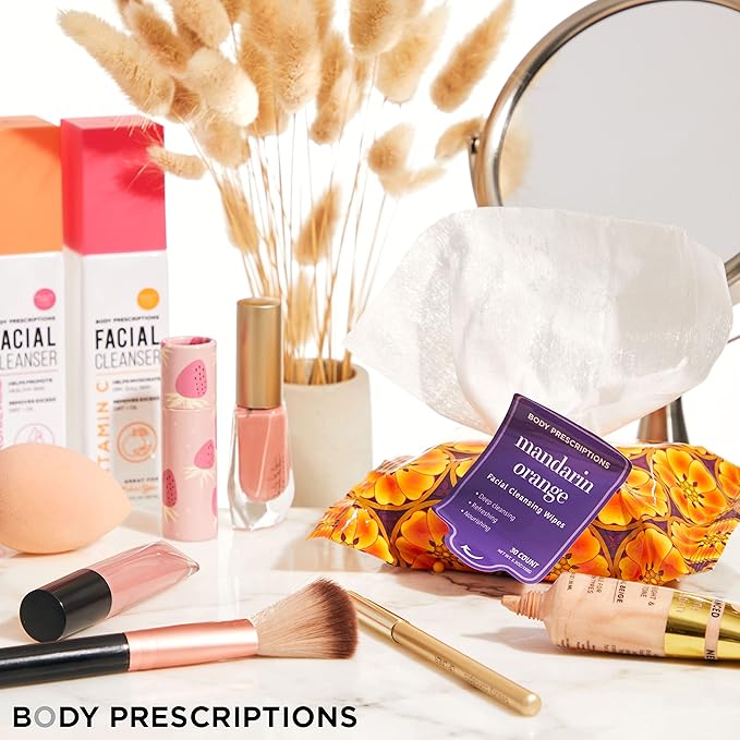 Body Prescriptions Makeup Remover Wipes - Bulk Pack, Gentle Cleansing Wipes for Easy Makeup Removal, Mandarin, Orchid, Grapefruit, & Jasmine Tea
