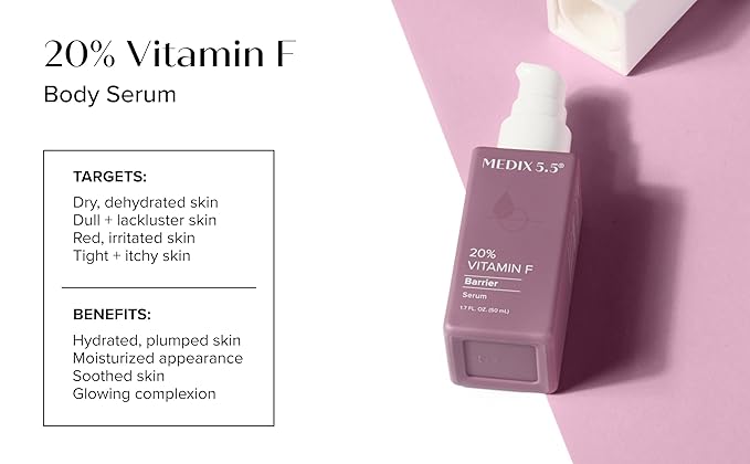 - PROTECTS SKIN – Vitamin F has a whole host of benefits for our skin, from protecting, restoring, & hydrating skin to keeping it calm and giving it a glow. Vitamin F effectively minimizes visible signs of premature aging by softening your skin, while also helping to replenish your skin barrier to allow your skin to feel hydrated, moisturized, & plumped throughout the day. Infused with Vitamin E, this Vitamin F booster can help reduce the look of crepey skin, sagging, stretch marks, & dry skin.