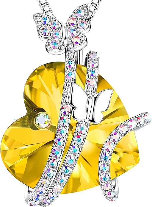 - Mothers Day Gifts: Butterfly symbolize love, hope and rebirth. Beautiful heart-shaped yellow crystal necklace with pendant featuring colored zircons and butterflies, featuring the gleaming faux citrine yellow crystal (November Birthstone). This beautiful November birthstone butterfly necklace is the perfect mothers day gifts or November birthday gift ideas, a November birthday gifts for women or mothers day gifts for mom grandma wife girlfriend